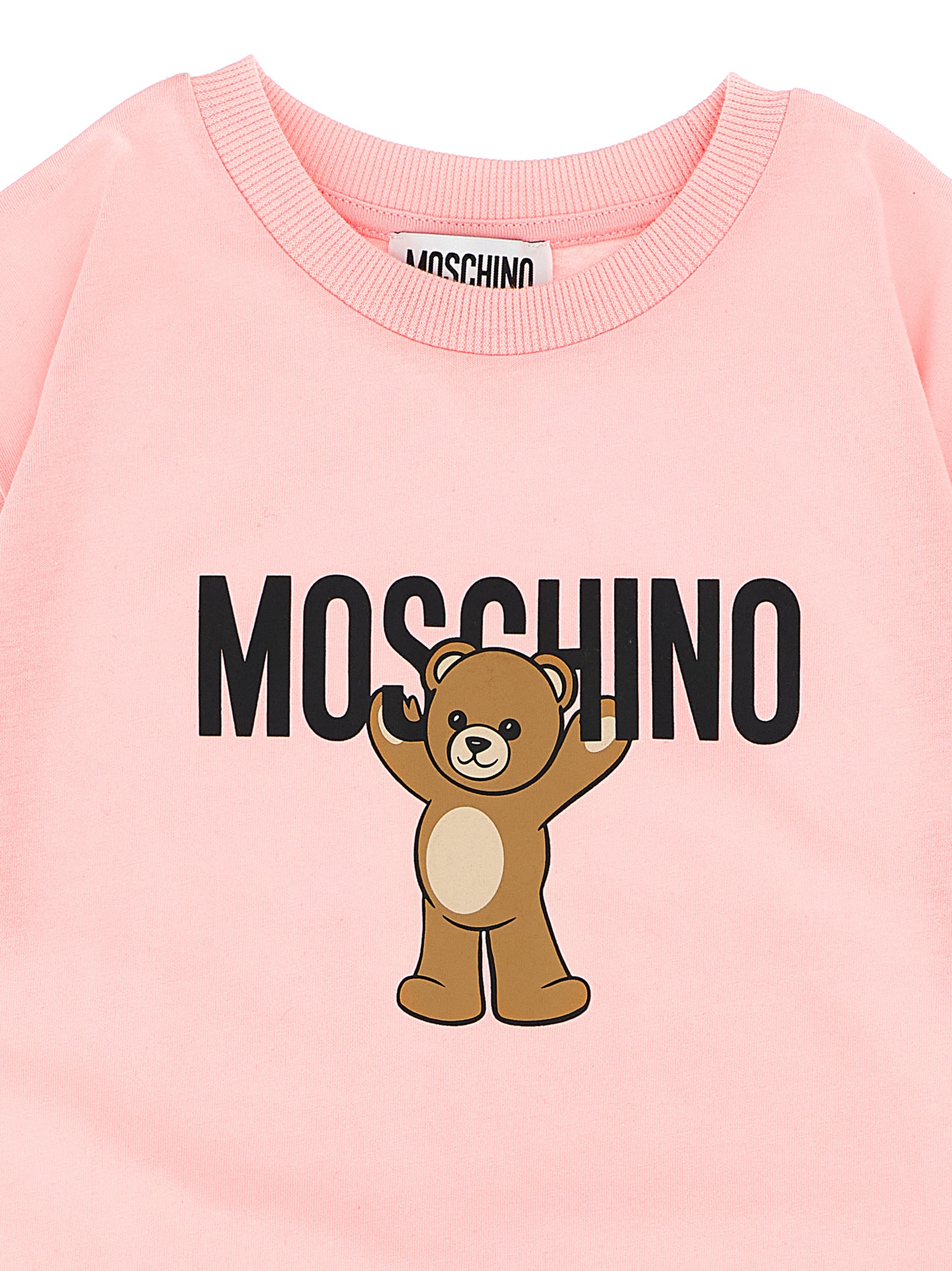 ДІТИ Бавовняна джерсі футболка з принтом 'Moschino Teddy Bear' спереду, круглий виріз, короткі рукави з опущеними плечима.