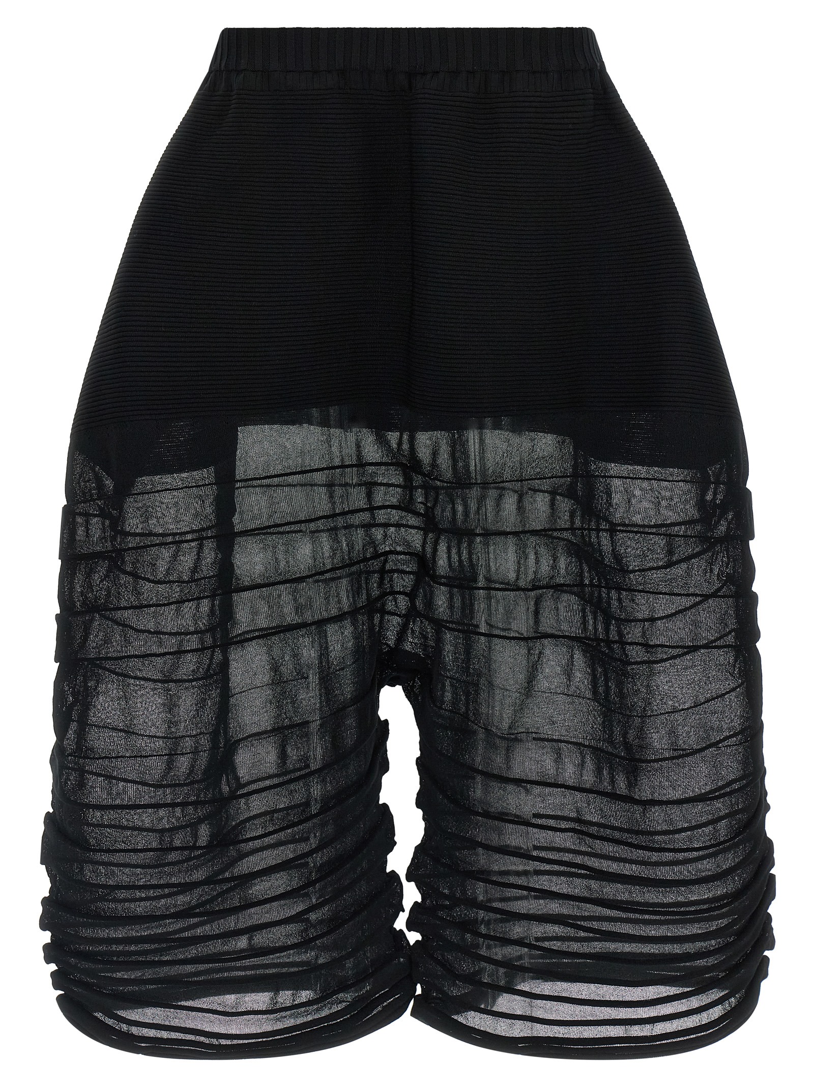 'Moving Knit' fabric pants with contrasting knit structures that create a light and elastic texture, extra wide leg, crop pattern, elastic waistband, pockets.