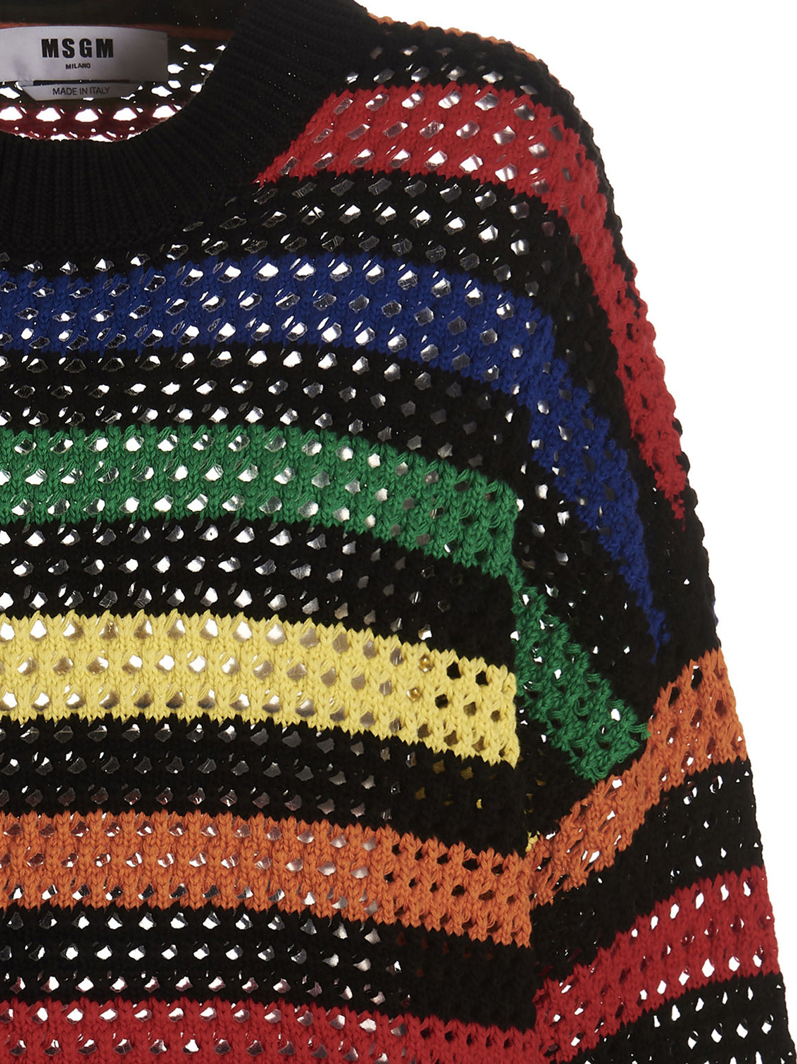 Multicolor striped cotton sweater, with crewneck, long cuffed sleeves.