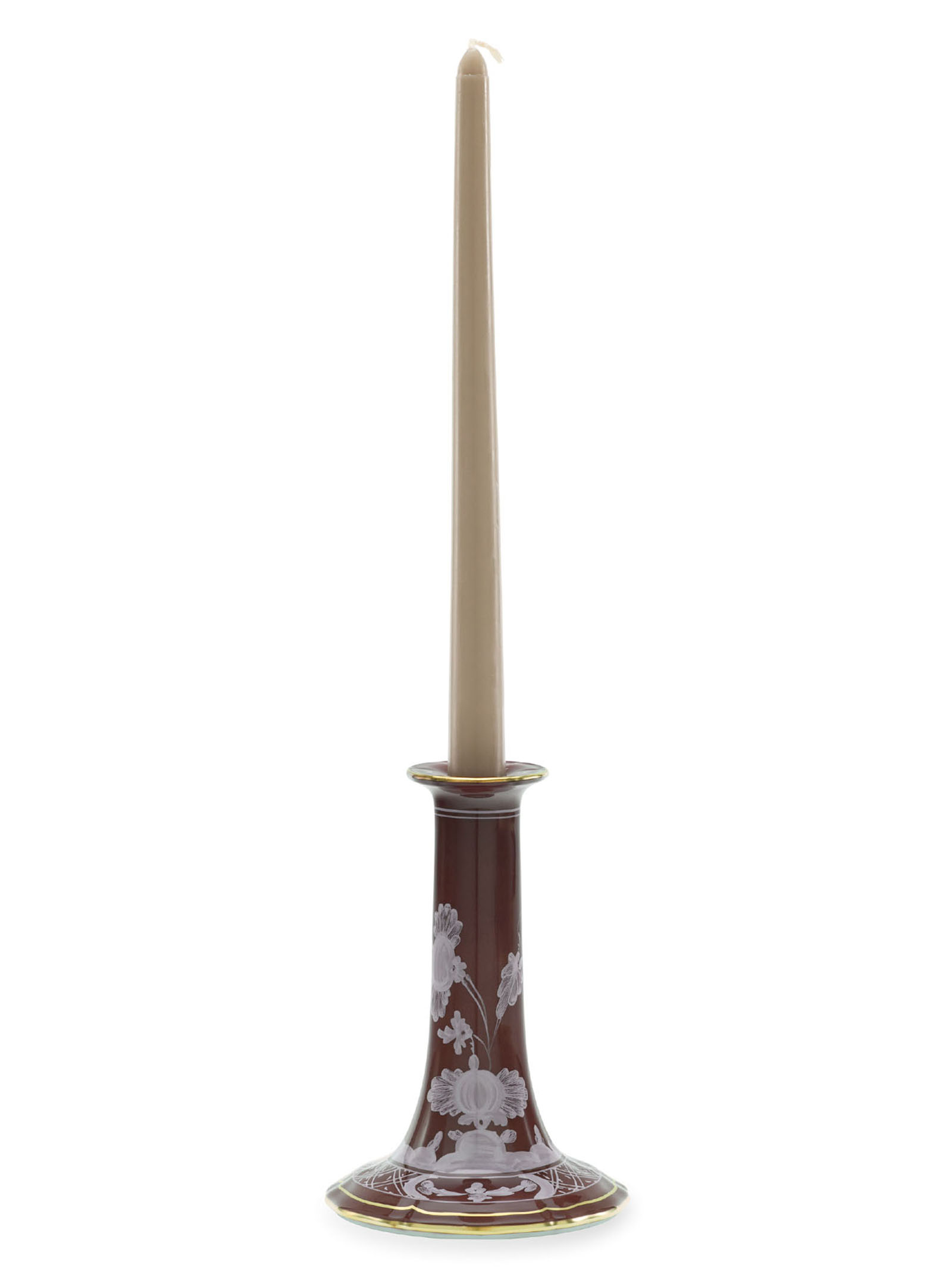 Design candle holder with chestnut brown decoration and gold thread. 'Oriente Italiano' collection. Not suitable for microwave.