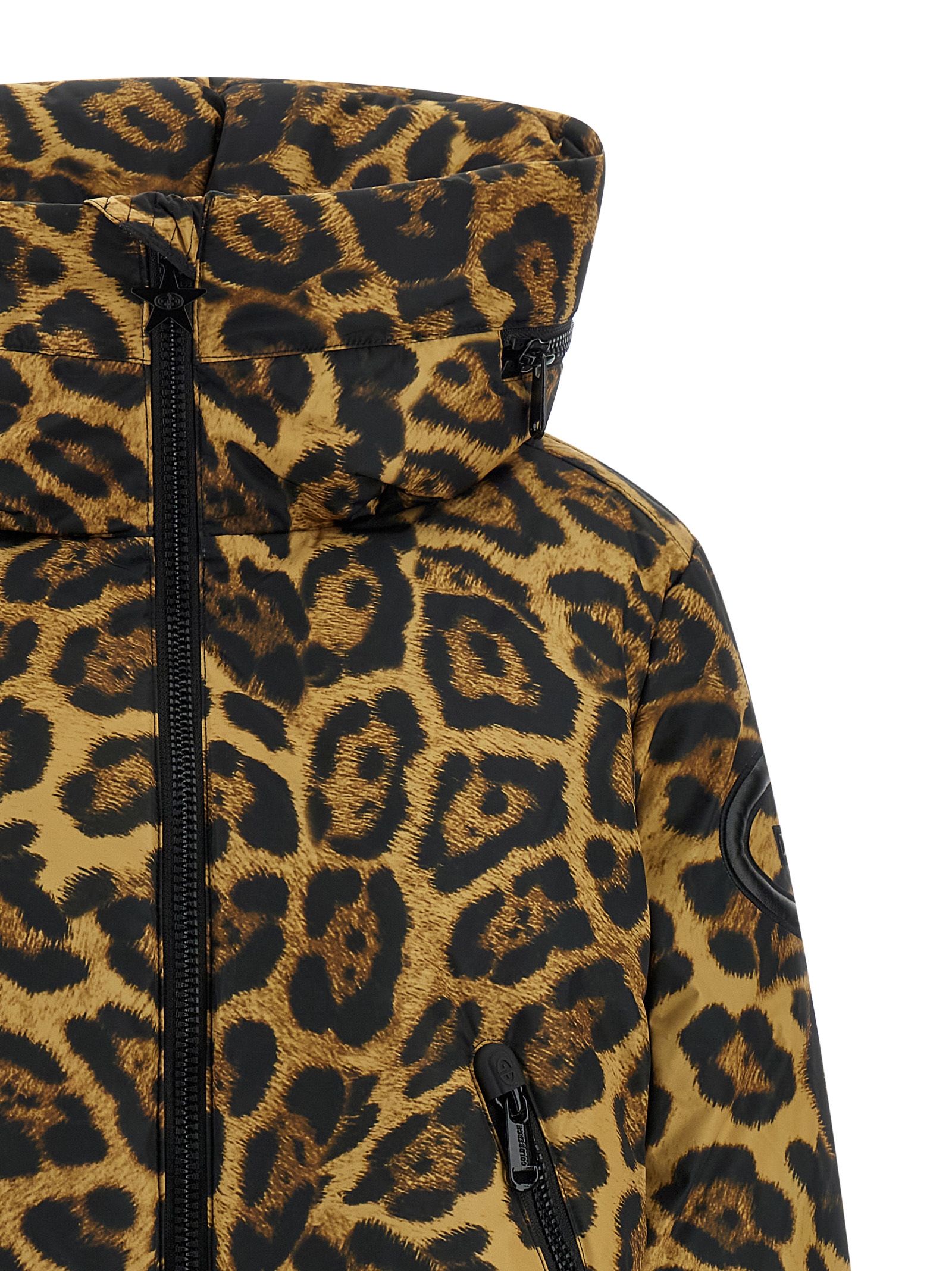 'Pantera' ski down jacket in water-repellent anti-odour technical fabric with goose down padding, standing collar with removable hood, trapeze silhouette, front zip closure, pockets, long sleeves with windproof gaiter and logo patch applied, inner gaiter and drawstring on the hem. SUSTAINABLE: Product made with recycled materials.