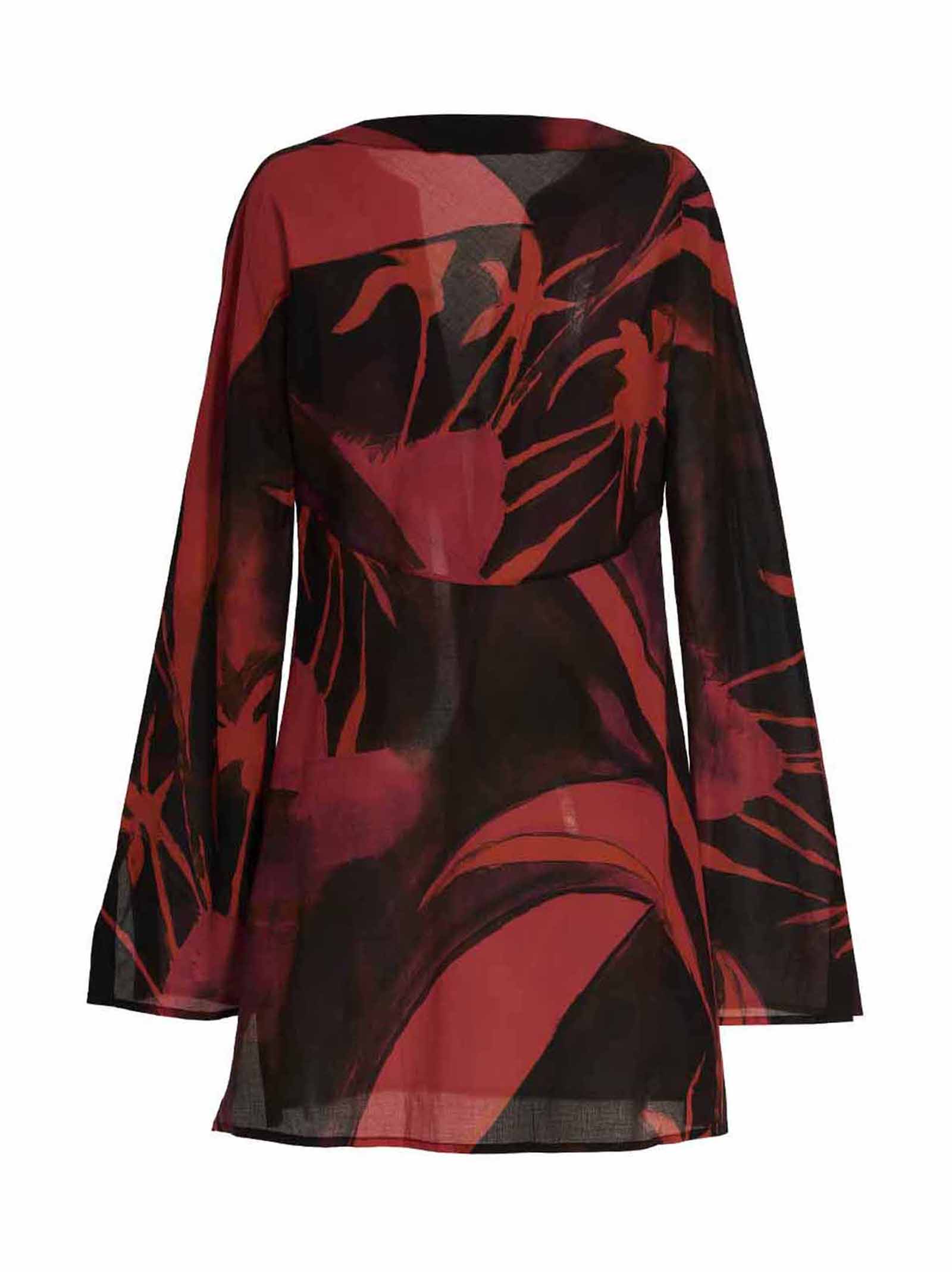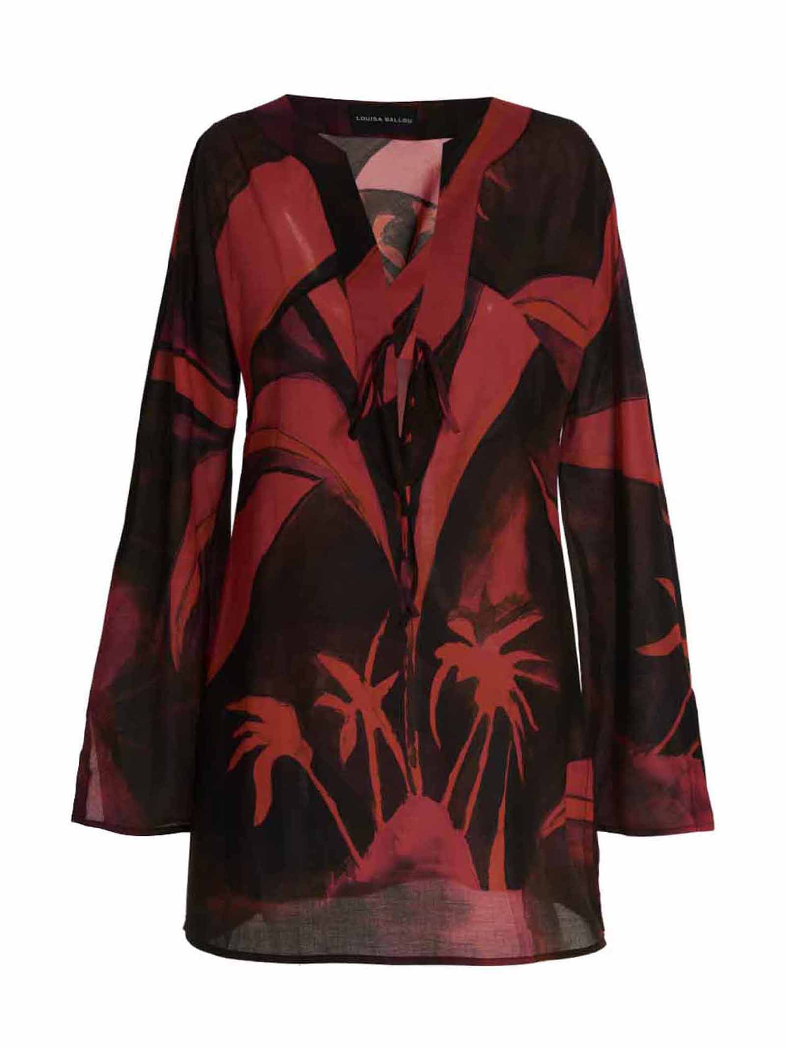 Короткий бавовняний кафтан з друком по всій поверхні, V-подібний виріз з бретеллю, довгими рукавами та бічними розрізами на нижньому краї.