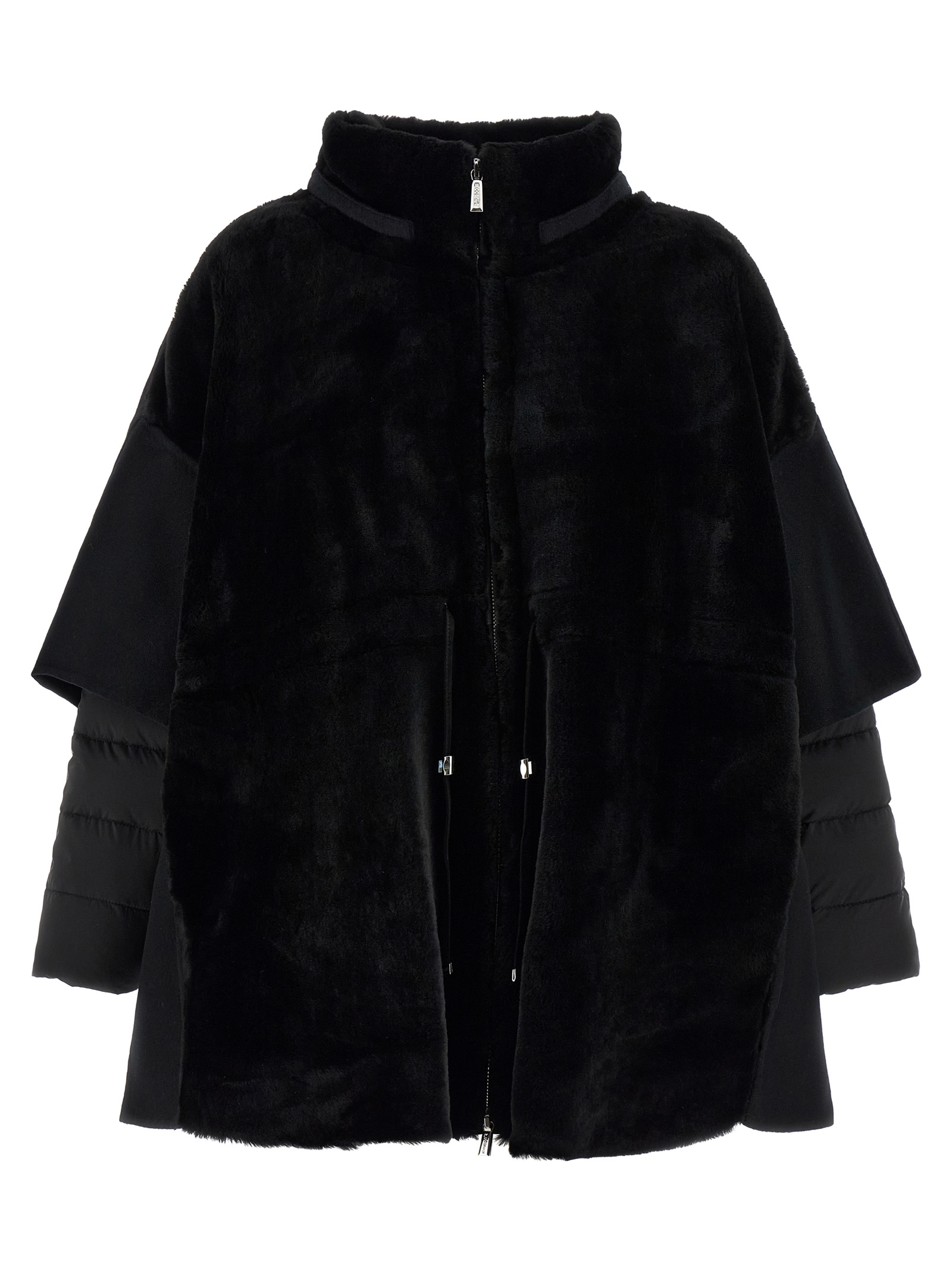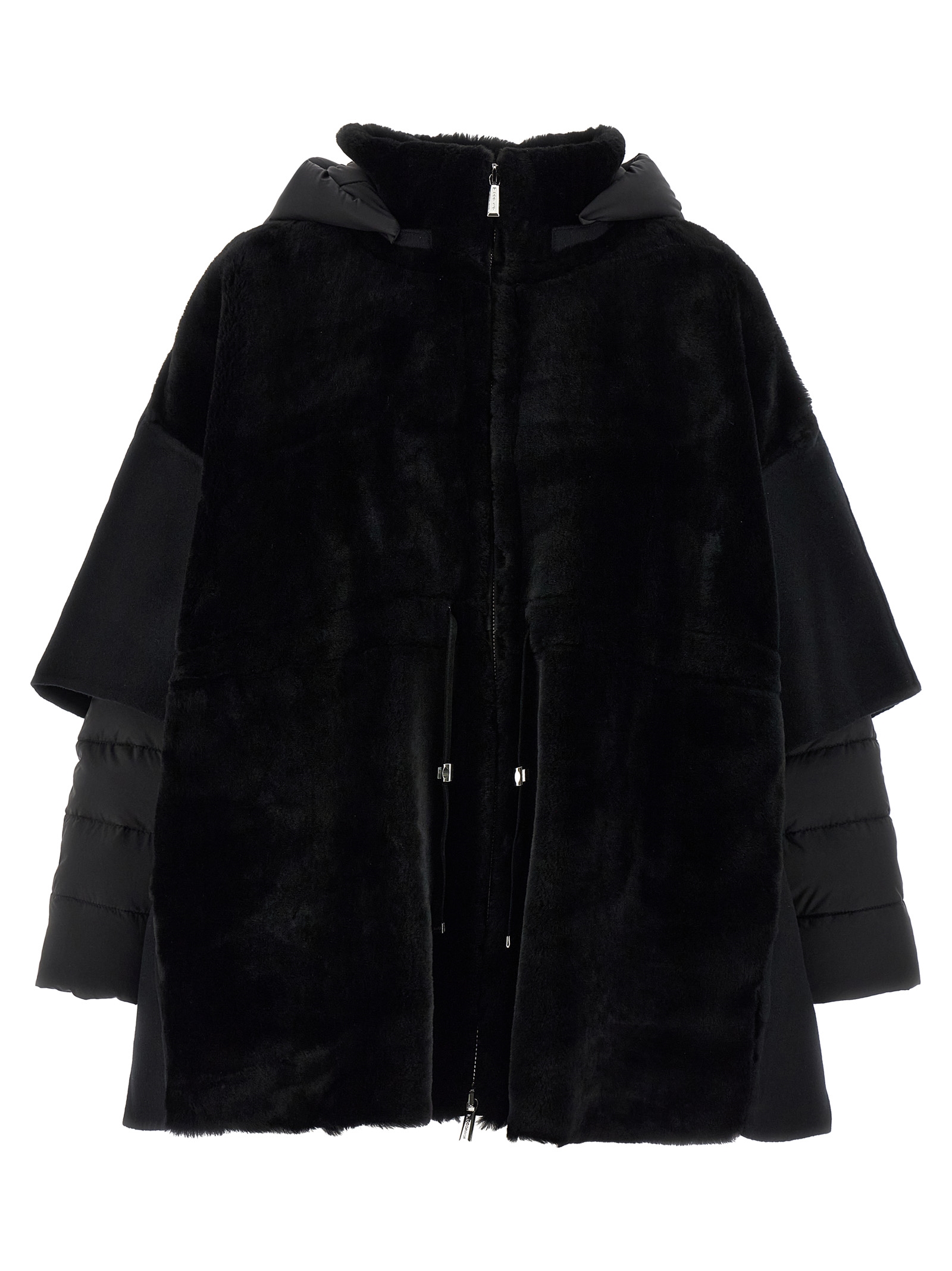 'Raja' куртка з овчини та вовни, капюшон з регульованими рукавами з кнопками та внутрішня пуховик з знімними рукавами на блискавці, знімний наповнений та стьобаний капюшон, застібка на блискавці спереду, шнурок на поясі, бічні кишені.