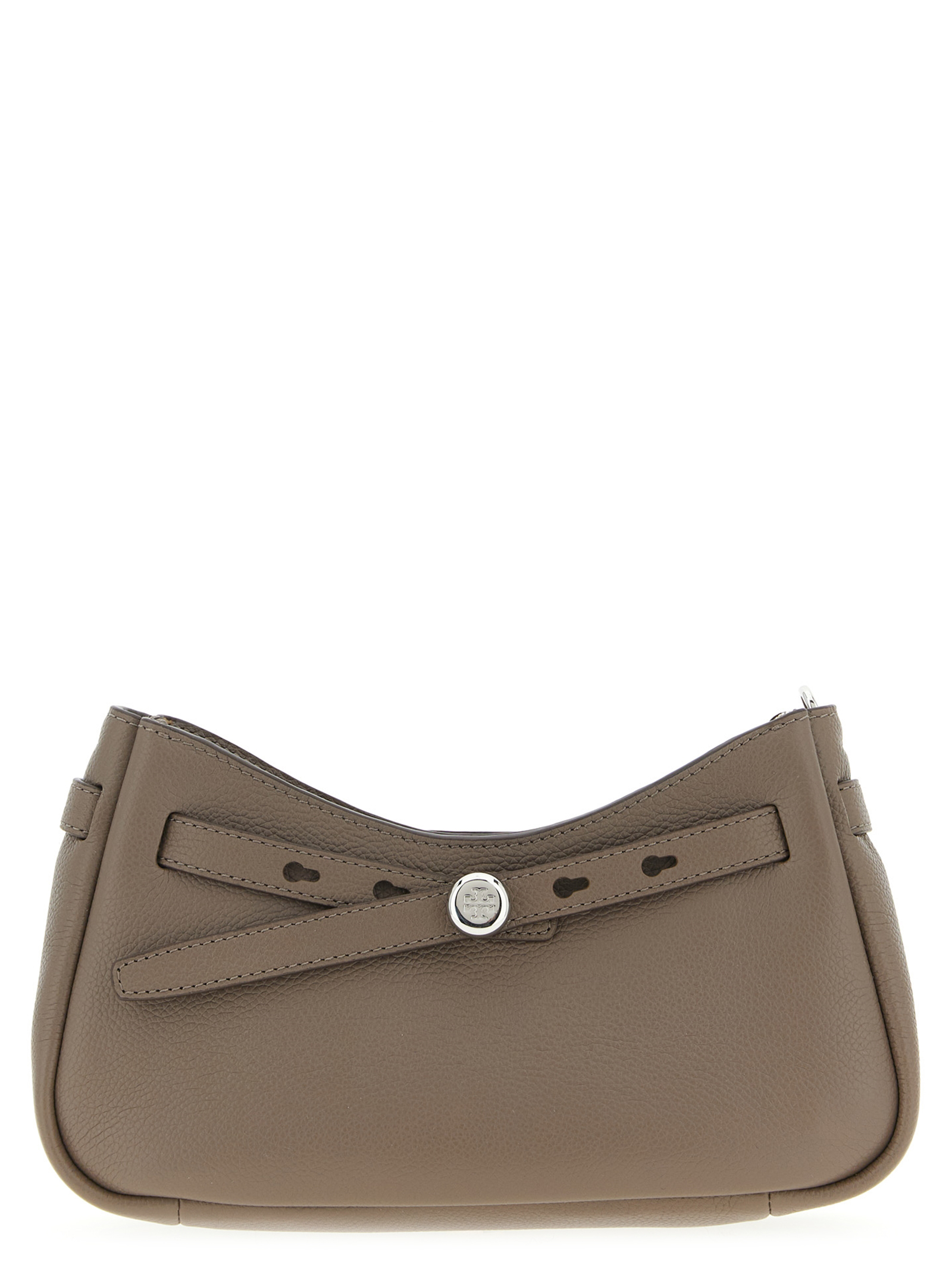 Ромі шкіряна сумка через плече з застібкою на блискавку, металеві логотипи спереду, регульований і знімний шкіряний ремінь.