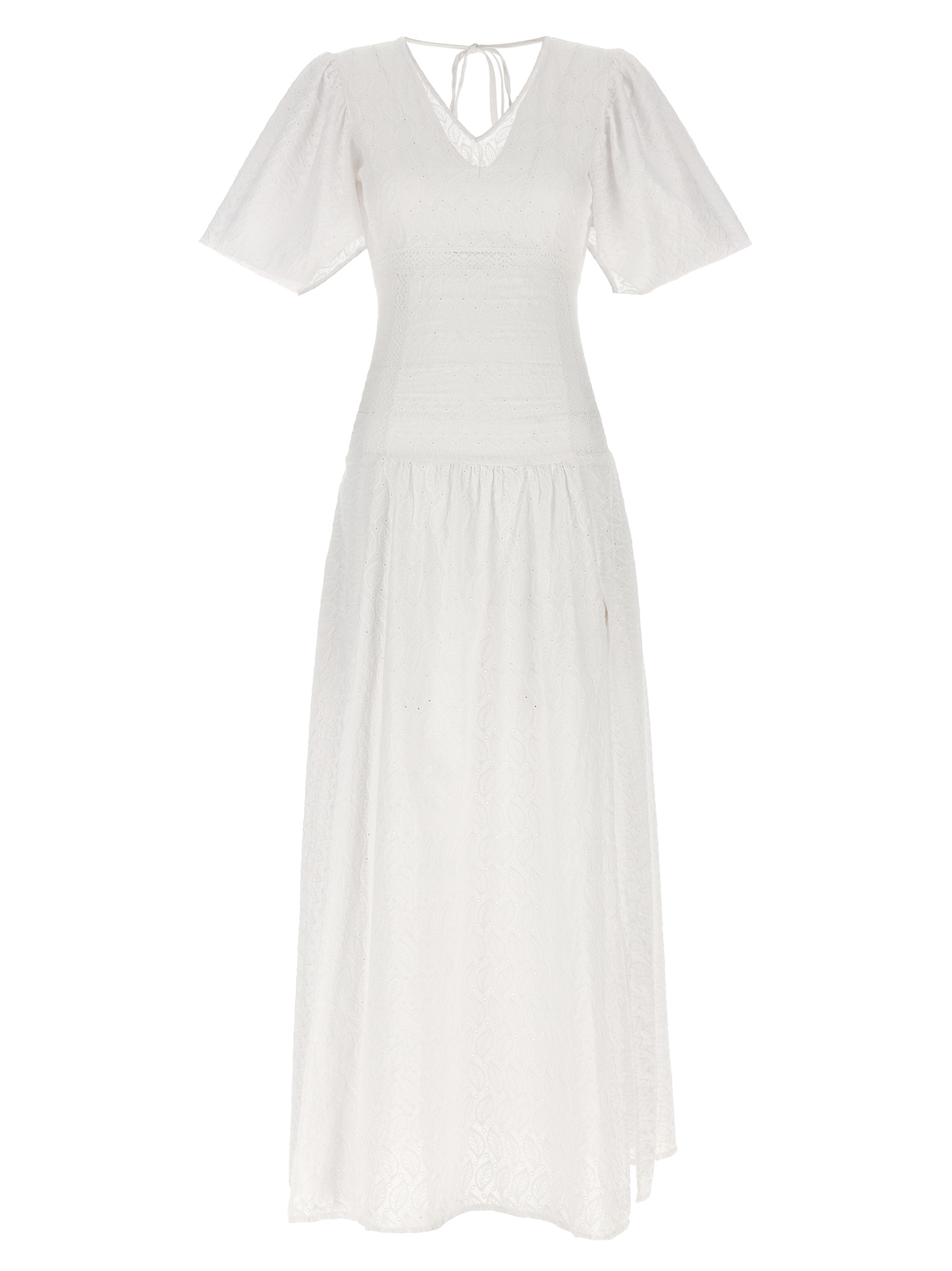 'Rosellina' бавовняна сукня з вишивкою англійською з V-подібним вирізом спереду та ззаду, довгими рукавами з відкриттям, широкими бічними розрізами, кишенями.