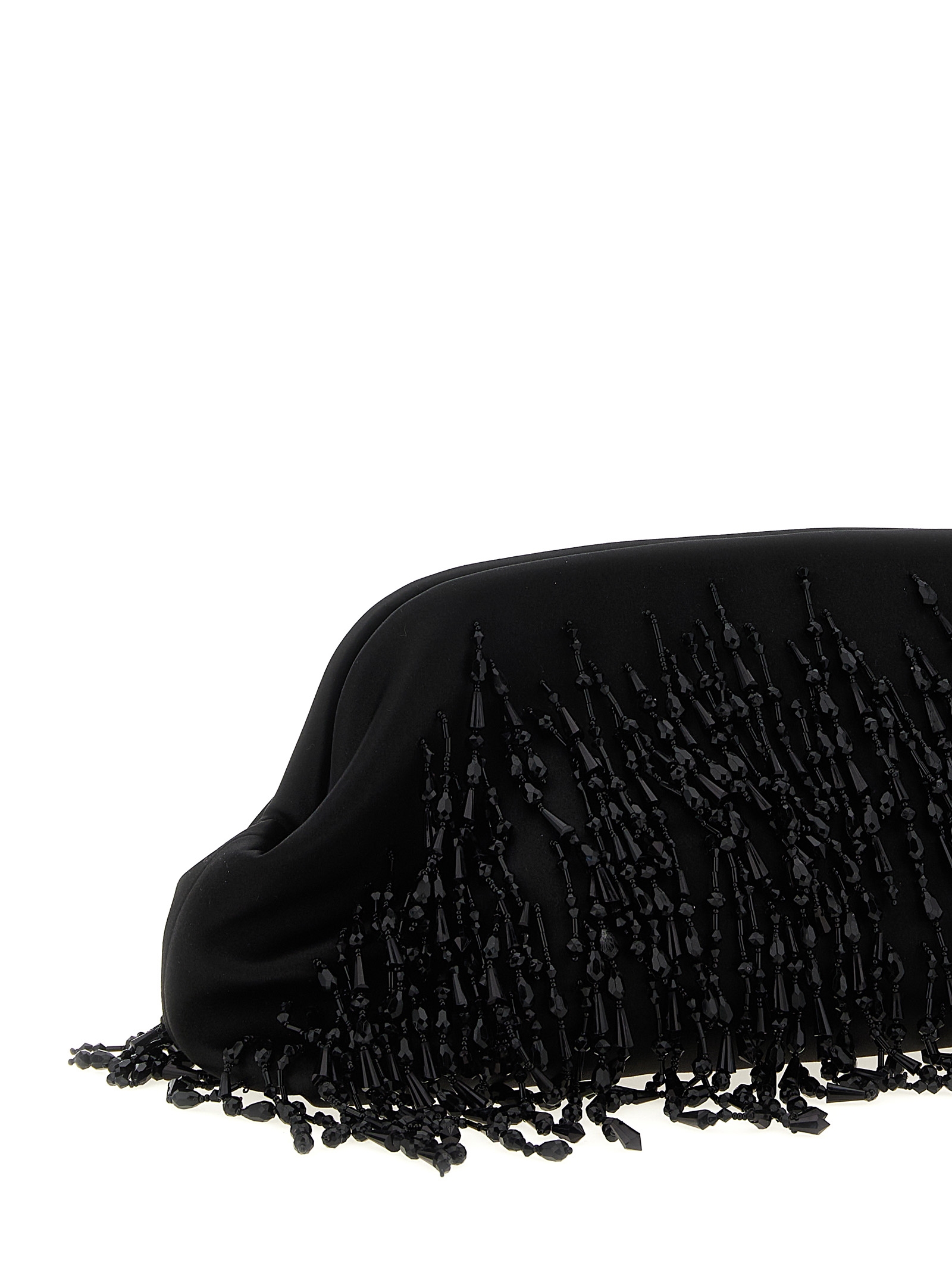 Сатиновий клатч з бісером з вишивкою з підвіскою, магнітна застібка, знімний ланцюговий плечовий ремінь.