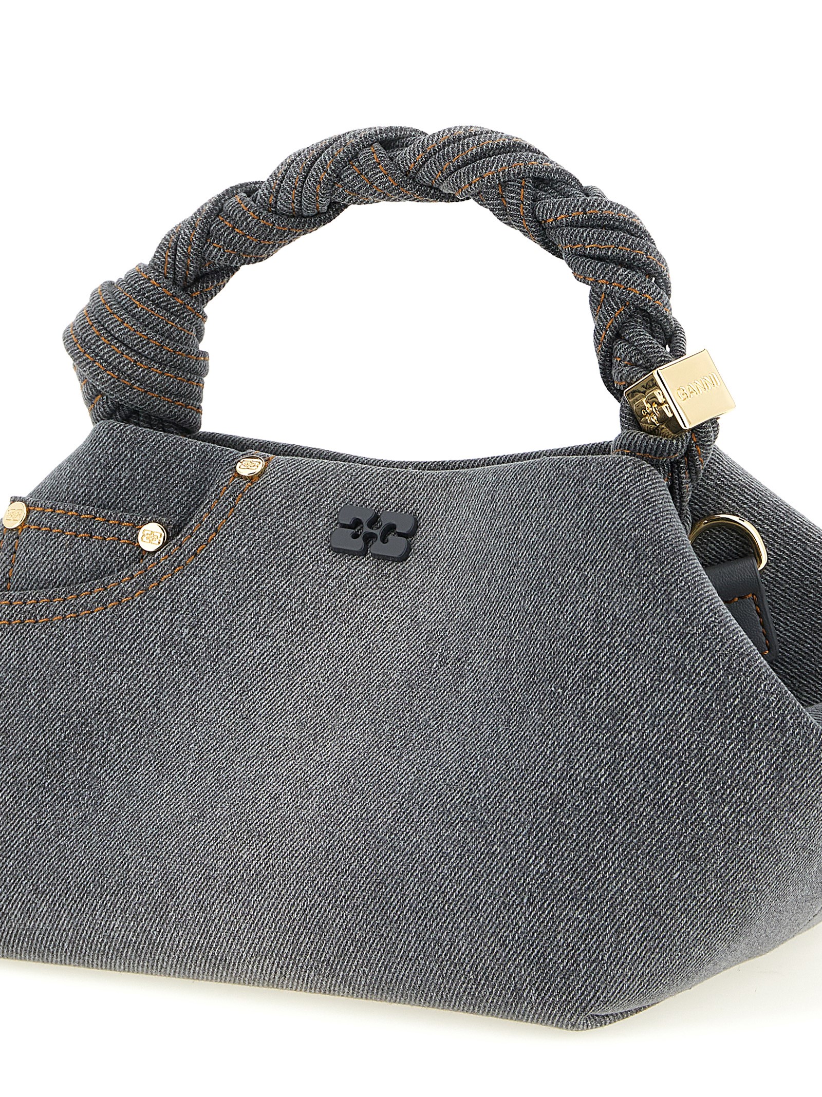 'Small Bou' сумка з бавовняної суміші з тональним металевим логотипом 'GANNI Butterfly' спереду, задня кишеня з вишивкою логотипу, фіксована плетена ручка з вузлом і металевою гайкою, внутрішня магнітна застібка, регульований і знімний плечовий ремінь. СТІЙКИЙ: Продукт виготовлений з перероблених матеріалів.