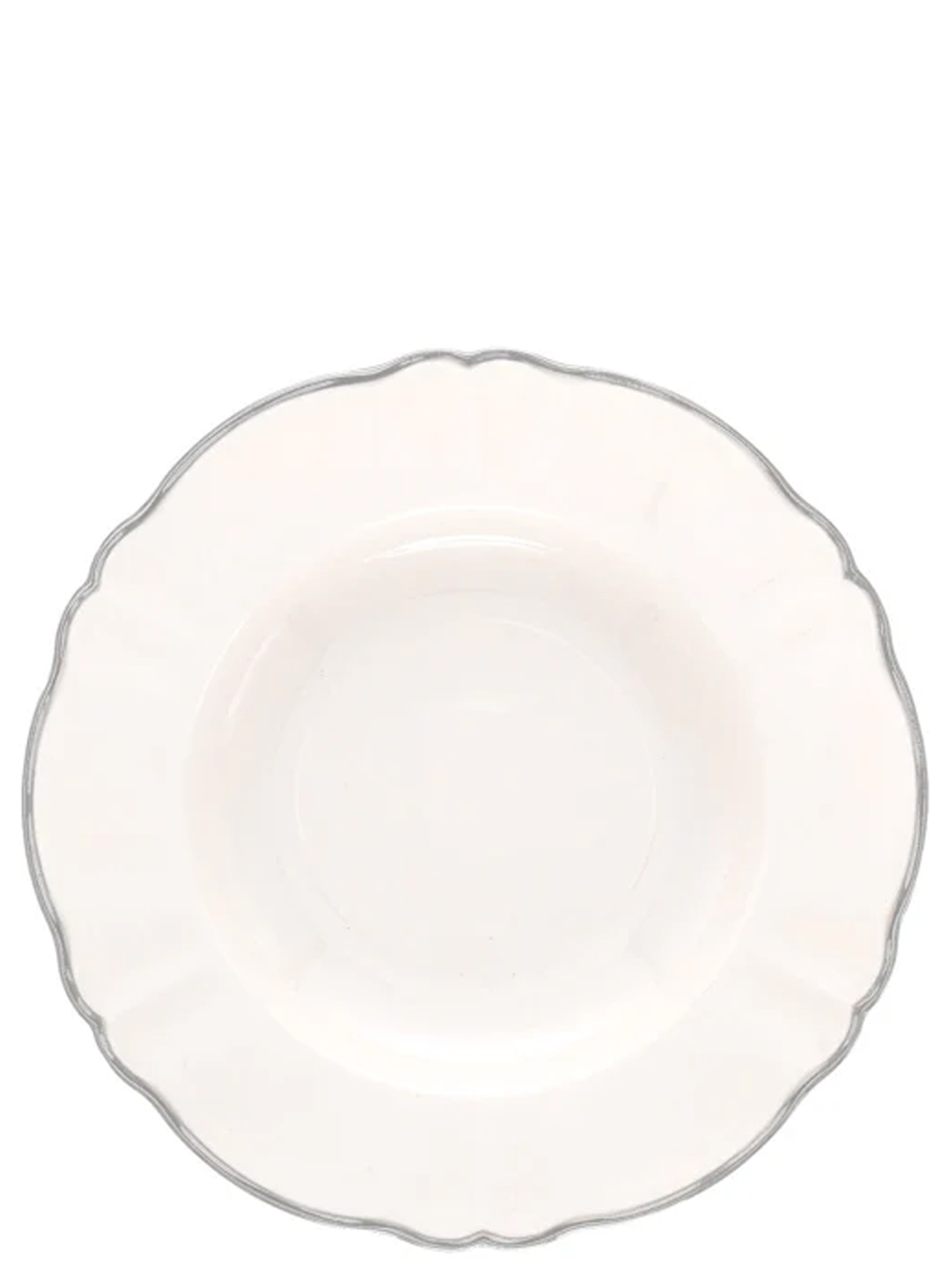 Тарілка з слонової кістки з платиновим обрамленням. Підходить для посудомийних машин - Макс 250 миттів. Не підходить для мікрохвильової печі.