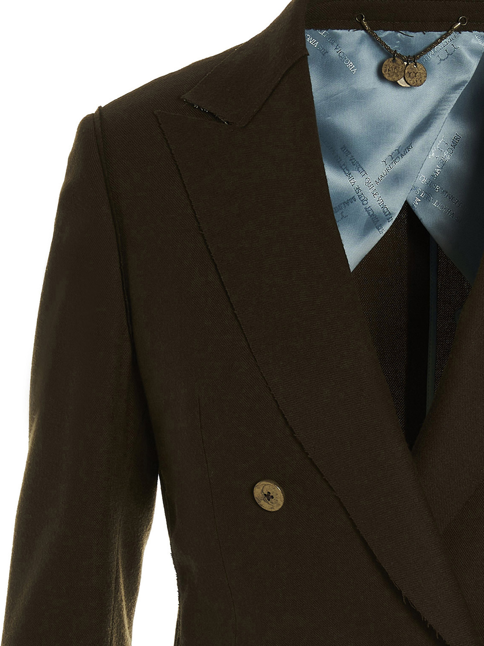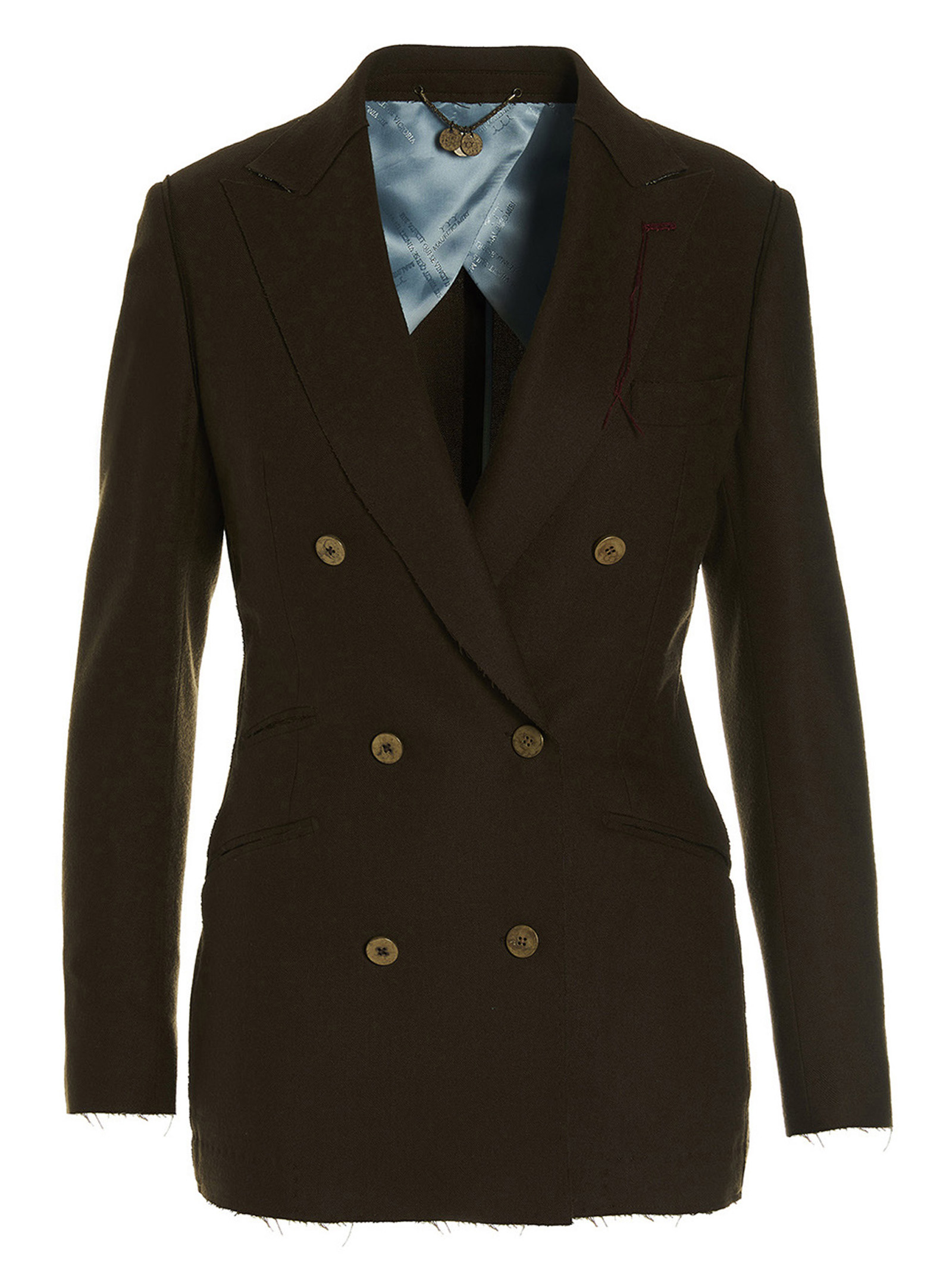 'Stevie' double-breasted wool blazer with button closure, pockets, long sleeves, vents at the back.