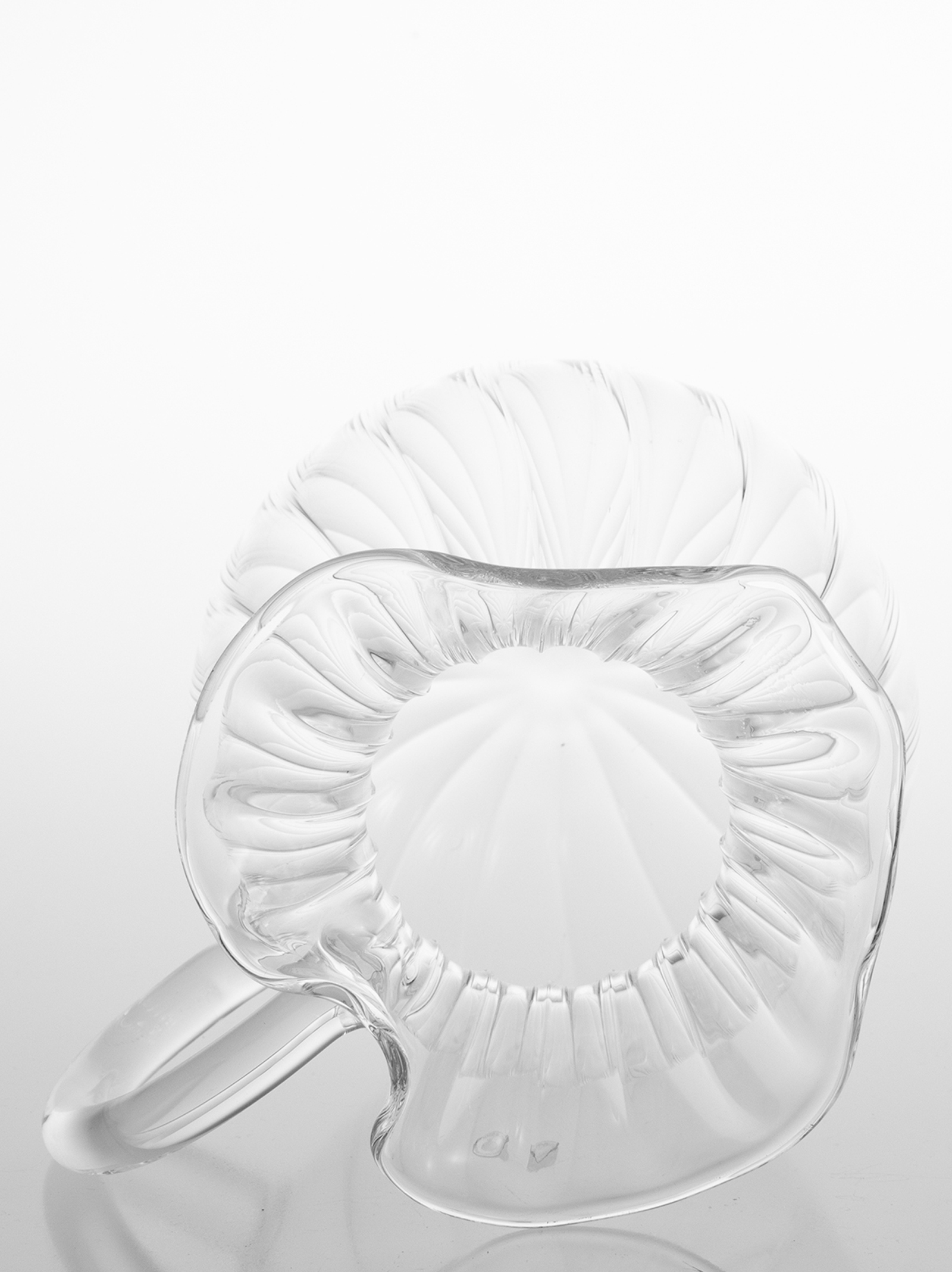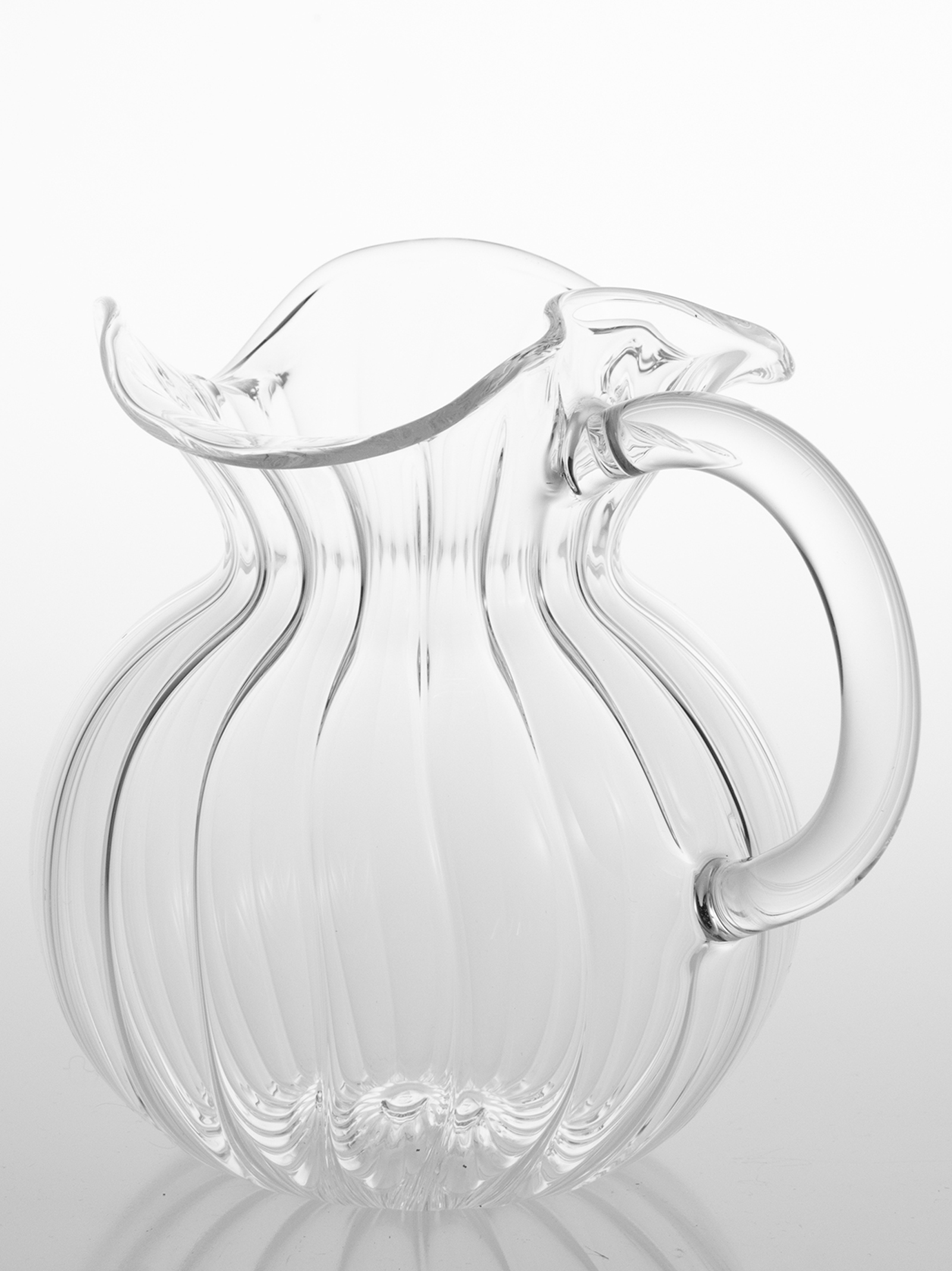 'Torcello' jug in mouth-blown borosilicate glass. Decorated manually with colored glass rods spread in flame.