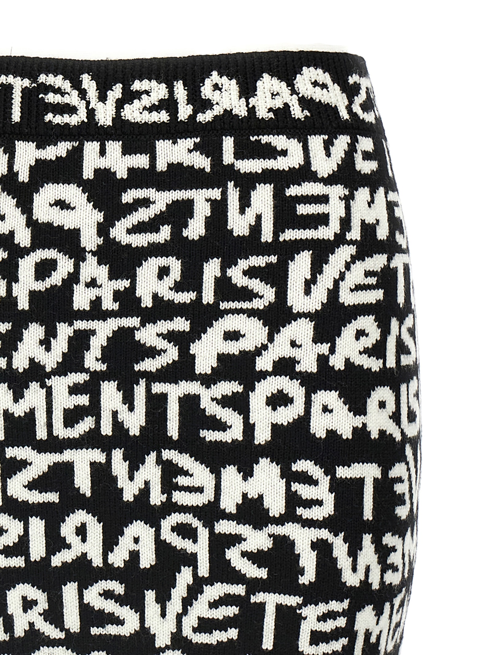 'Vetements Paris Monogram Mini' спідниця з вовняного трикотажу з жакардовим логотипом, еластичний пояс, обірваний край.