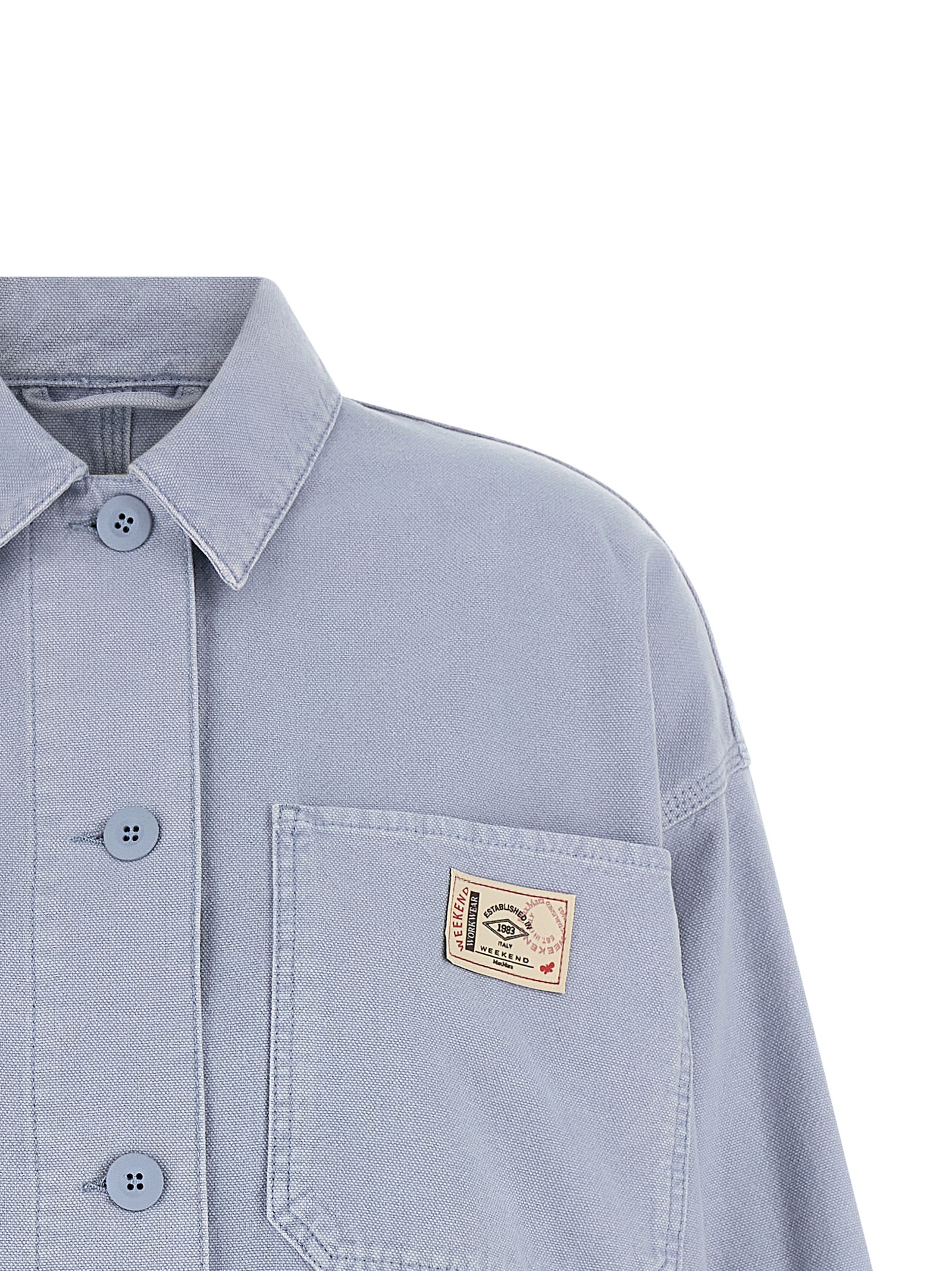'WkdAlbum' куртка з чистої бавовняної канви, пофарбована в одязі, модель робочого одягу, логотип на патчі та передня застібка на гудзиках, комір сорочки, довгі рукави з опущеними плечима, без підкладки.