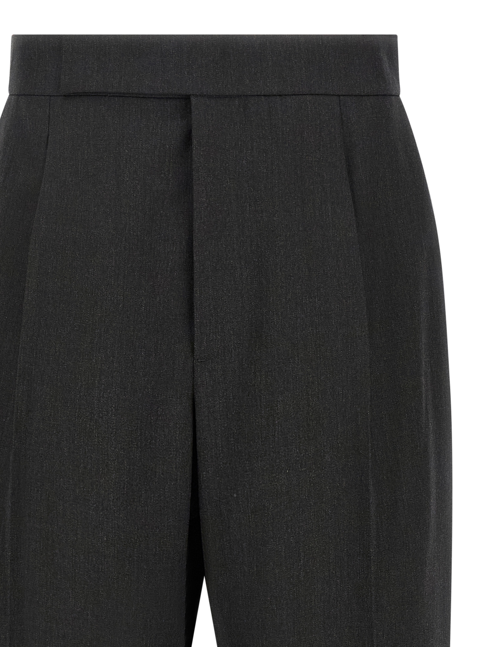 Вовняні штани в візерунку гусиної шкіри, складка з розтягнутою складкою та прямими штанинами, застібка на блискавці з гачком та гудзиком спереду, кишені.